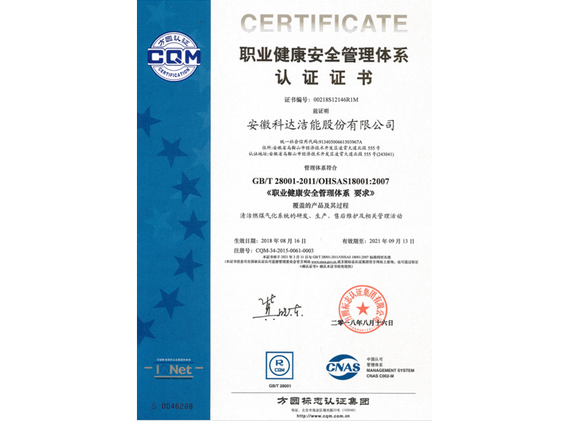 职业健康安全管理体系证书