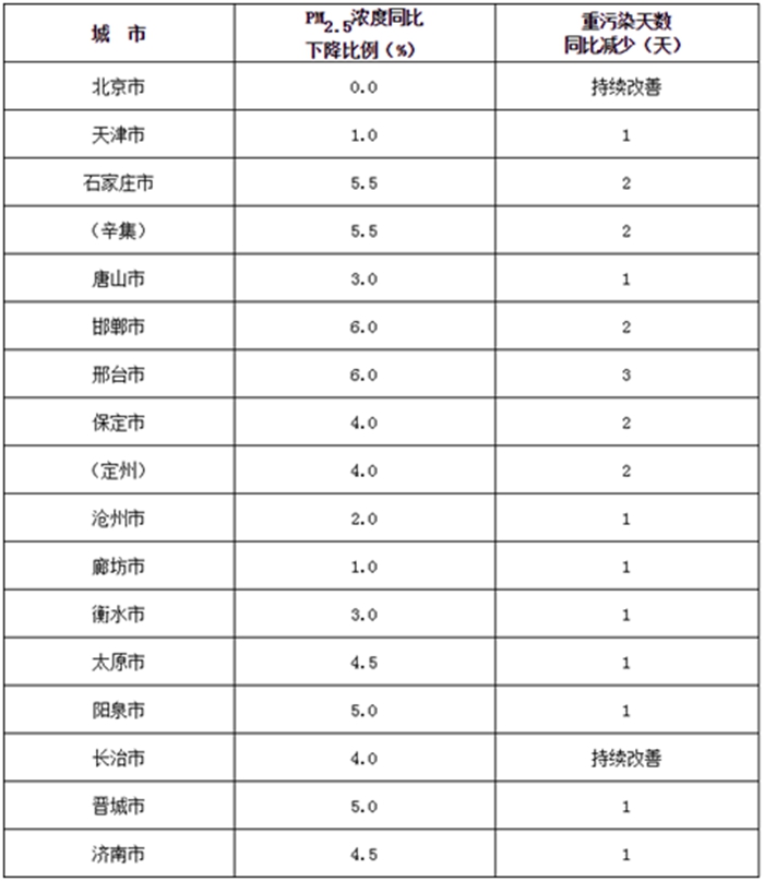 主要目标:稳中求进,推进环境空气质量持续改善,京津冀及周边地区全面完成2019年环境空气质量改善目标,协同控制温室气体排放,秋冬季期间(2019年10月1日至2020年3月31日)PM2.5平均浓度同比下降4%,重度及以上污染天数同比减少6%(详见附件1)。