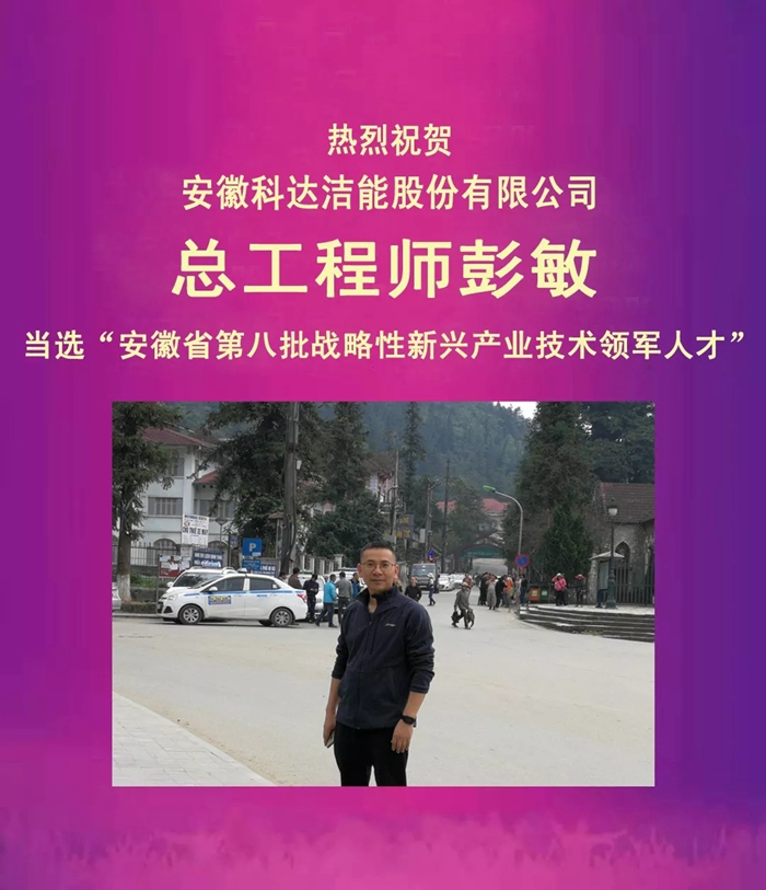 安徽科达洁能总工程师彭敏荣获“安徽省第八批战略性新兴产业技术领军人才”称号