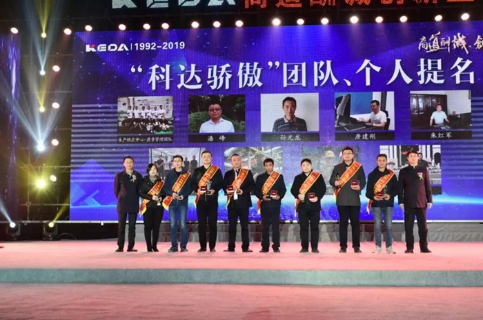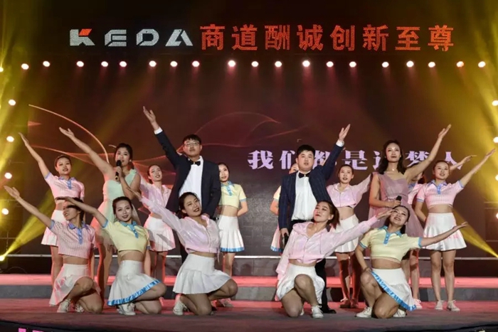 整场晚会以“创新之路”“时代骄傲”“自信前行”三个篇章分别展开叙述,通过催人奋进的歌舞、鼓舞士气的方阵拉歌、感人激励的叙事朗诵、正能量脱口秀、艰苦奋斗的视频等多种形式呈现了科达人勇往直前、朝气蓬勃的精神面貌,传递出科达将继续向科技高峰奋力攀登,向“科达梦”扬帆远航的美好愿景。晚会现场还颁发了优秀员工、忠诚员工、2019“科达骄傲”人物及团队(含提名奖)等奖项,接近尾声时,全体科达人合唱《科达之歌》,唱出二十七年来的荣耀和感动;董事长边程带领公司高管登台与全体演员一齐高唱《明天会更好》,唱出明天的展望,心中的期盼和豪迈,晚会落下帷幕。