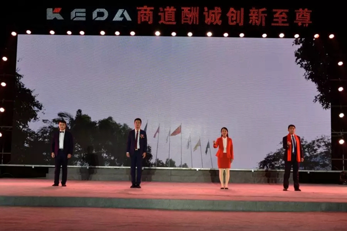 12月9日晚7点,伴随科达幸福之舞的精彩演绎,安徽会场晚会正式启幕。公司董事长边程,安徽科达机电总经理兼安徽科达洁能总经理陈新疆,广东科达洁能副总裁周鹏、曾飞,广东科达洁能党委书记李斌、审计总监焦生洪,安徽科达售电董事长兼安徽科达新能源汽车销售总经理张峰,安徽科达新材料总经理朱亚锋,安徽虎渡科达总经理侯安平,科行环保总经理隆玉周,科达东大总经理赵彭喜,以及墙材机械公司首席技术专家徐顺武,特邀嘉宾叶方涛、其他管理层领导和粤商商会的朋友们出席了庆典晚会。